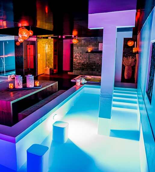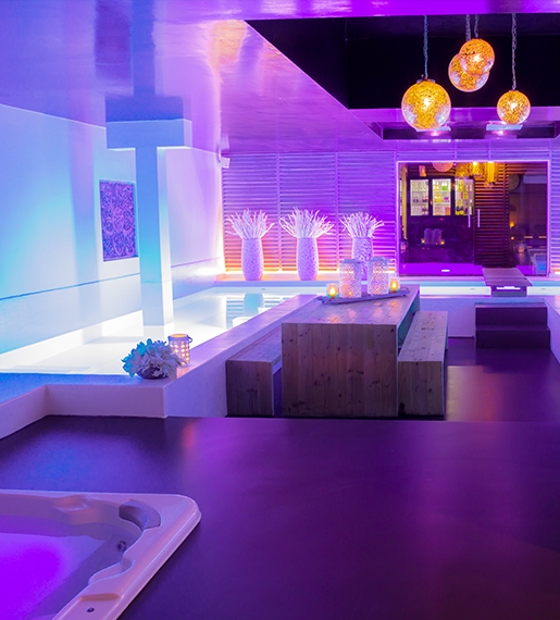 UNIT 2 beschikt over een binnenzwembad, whirlpool, douches, sauna, hammam en infraroodruimte. De overloop-whirlpool is verbonden met een buffertank van 20.000 liter en filterinstallatie zodat elke 4 minuten het water volledig gefilterd is.