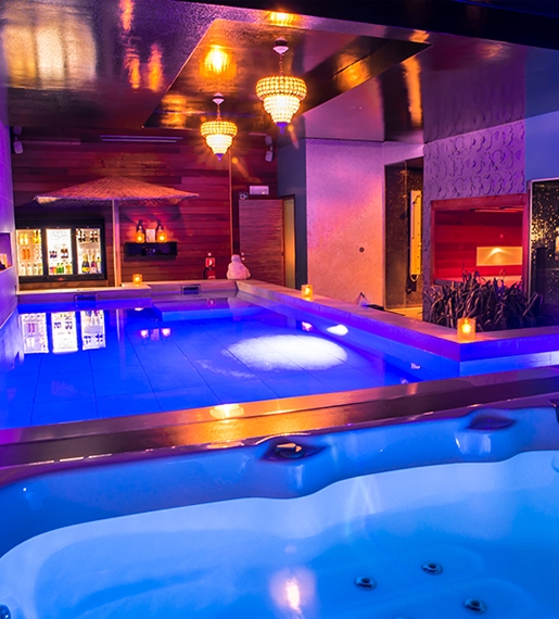 UNIT 3 beschikt over een binnenzwembad, whirlpool, sauna, hammam en infraroodruimte. De overloop-whirlpool is verbonden met een buffertank van 20.000 liter en filterinstallatie zodat elke 4 minuten het water volledig gefilterd is.